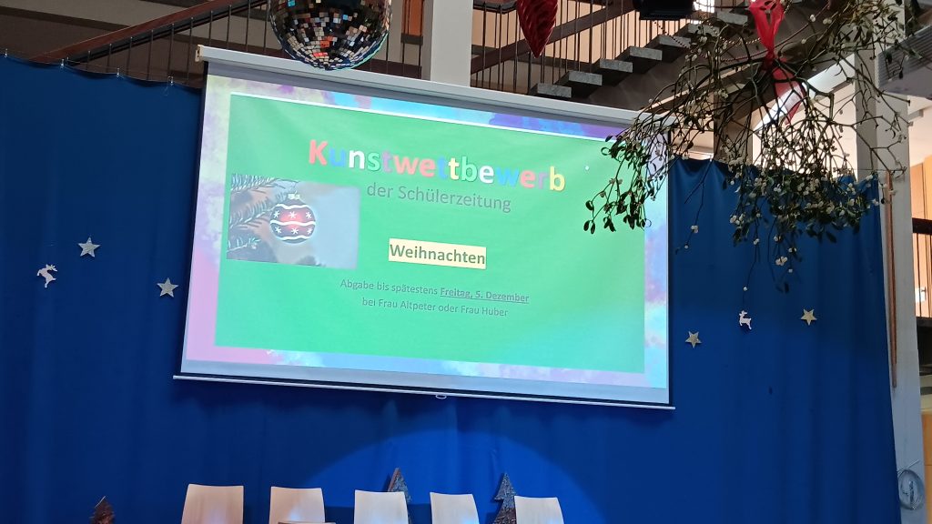 Neben einer Aufführung der Trommel-Gruppe gab es Neuigkeiten aus der SMV. Die Schülerzeitung gab das Thema des diesjährigen Kunstwettbewerbes bekannt: „Weihnachten“. Die Schülerinnen und Schüler können ihre Beiträge bis zum 5. Dezember einreichen.
