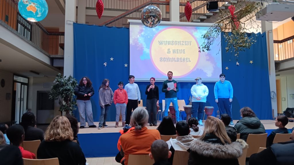 Und zum Schluss gab es wie immer neben einem Quiz auch noch die Verleihung der Wunschzeit beziehungsweise die Bekanntgabe der Schulregel, die in den nächsten Wochen im Mittelpunkt stehen soll: „Ich helfe den Anderen“.