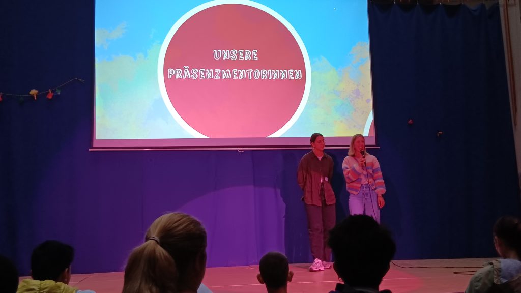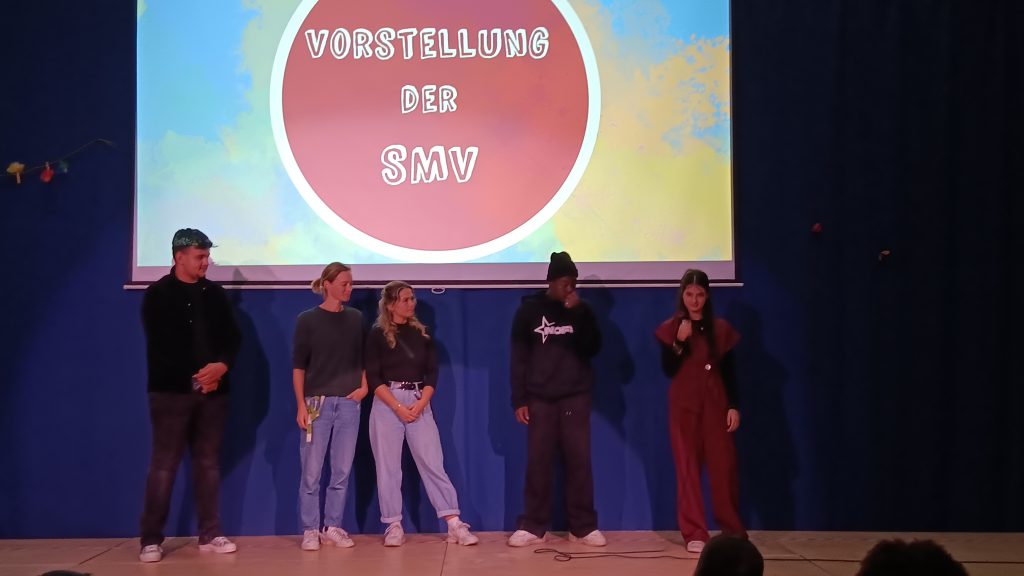Die neu gewählte SMV stellte sich kurz vor, es wurde aus dem Schullandheim der 9G berichtet und es wurden die neuen „Präsenzmentorinnen“ präsentiert. Letztere stehen im Unterrichtsalltag für Beratungs- und Streitschlichtungszwecken zur Verfügung.