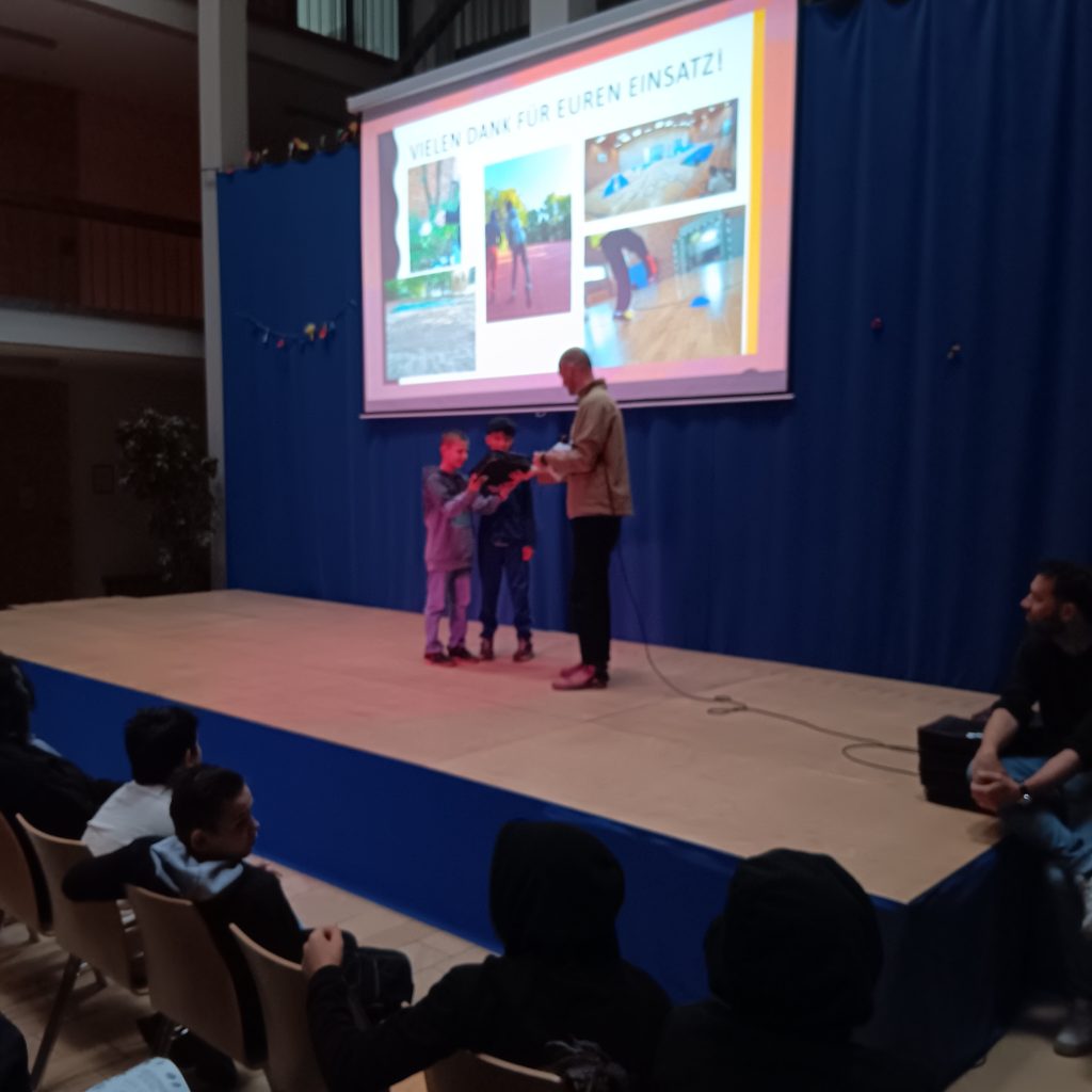Nachdem die Teilnehmerinnen und Teilnehmer des diesjährigen Sportfestes ausgezeichnet wurden, gab es wie immer noch ein Kahoot-Quiz und die Schulregel, die wir in den nächsten Wochen genauer ins Visier nehmen.
