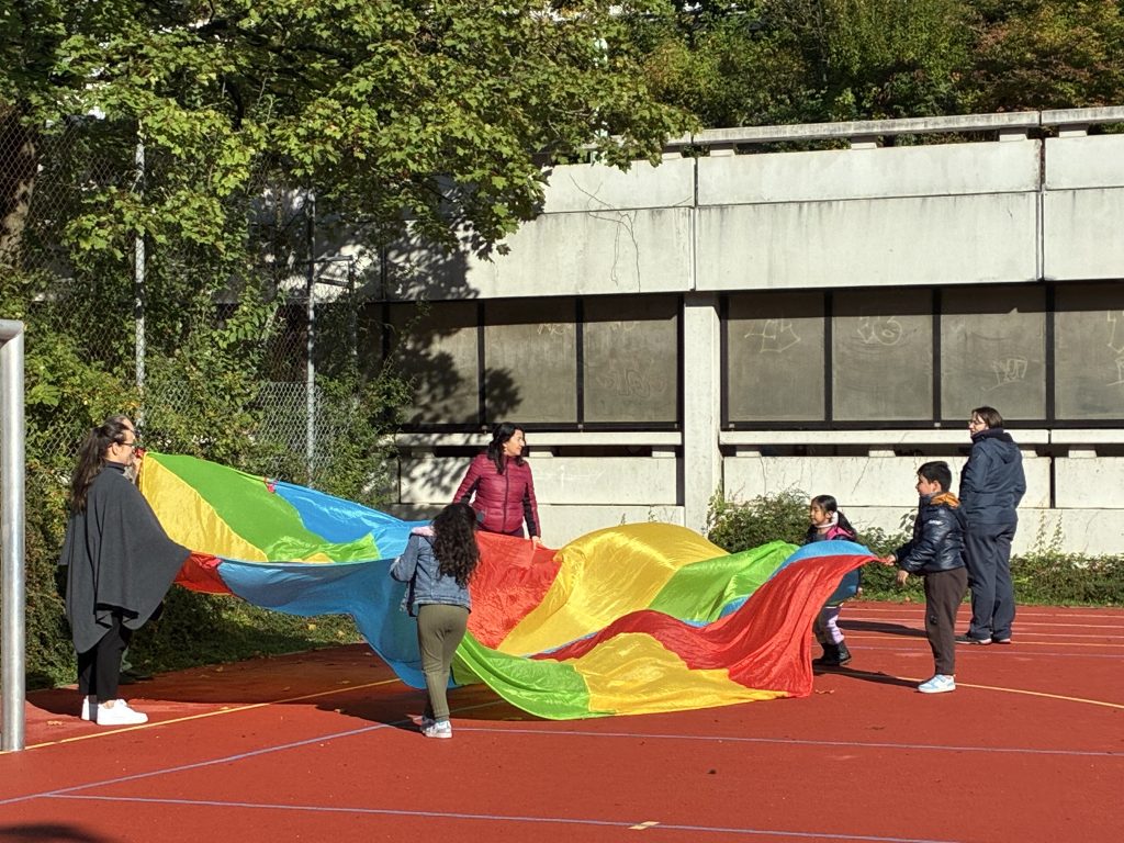 Am 1. Oktober fand an der Nadistraße das Herbstspielefest mit großer Unterstützung unserer Praktikantinnen und Praktikanten statt. Bei schönstem Sonnenschein konnten sich die Kinder schminken lassen und wurden an zahlreichen Stationen mit neuen und alten Freunden klassenübergreifend Hockey, Sackhüpfen, Eierlaufen, Schwungtuch, Maßkrugstemmen und und und gespielt. Eine schöne Athmosphäre an einem in München unruhigen Tag.